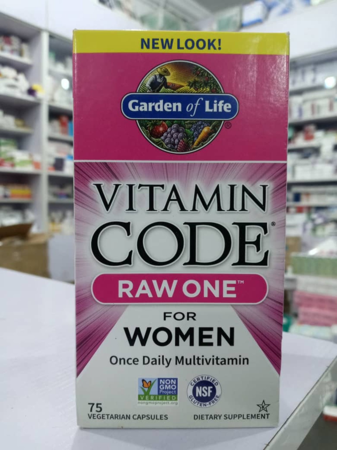Support your daily wellness with Garden of Life Vitamin Code RAW ONE for Women, a premium whole food multivitamin specially formulated to meet women’s unique nutritional needs. Designed for energy, beauty, and vitality, this once-daily supplement delivers essential vitamins and minerals derived from real, raw fruits and vegetables—never synthetic ingredients.