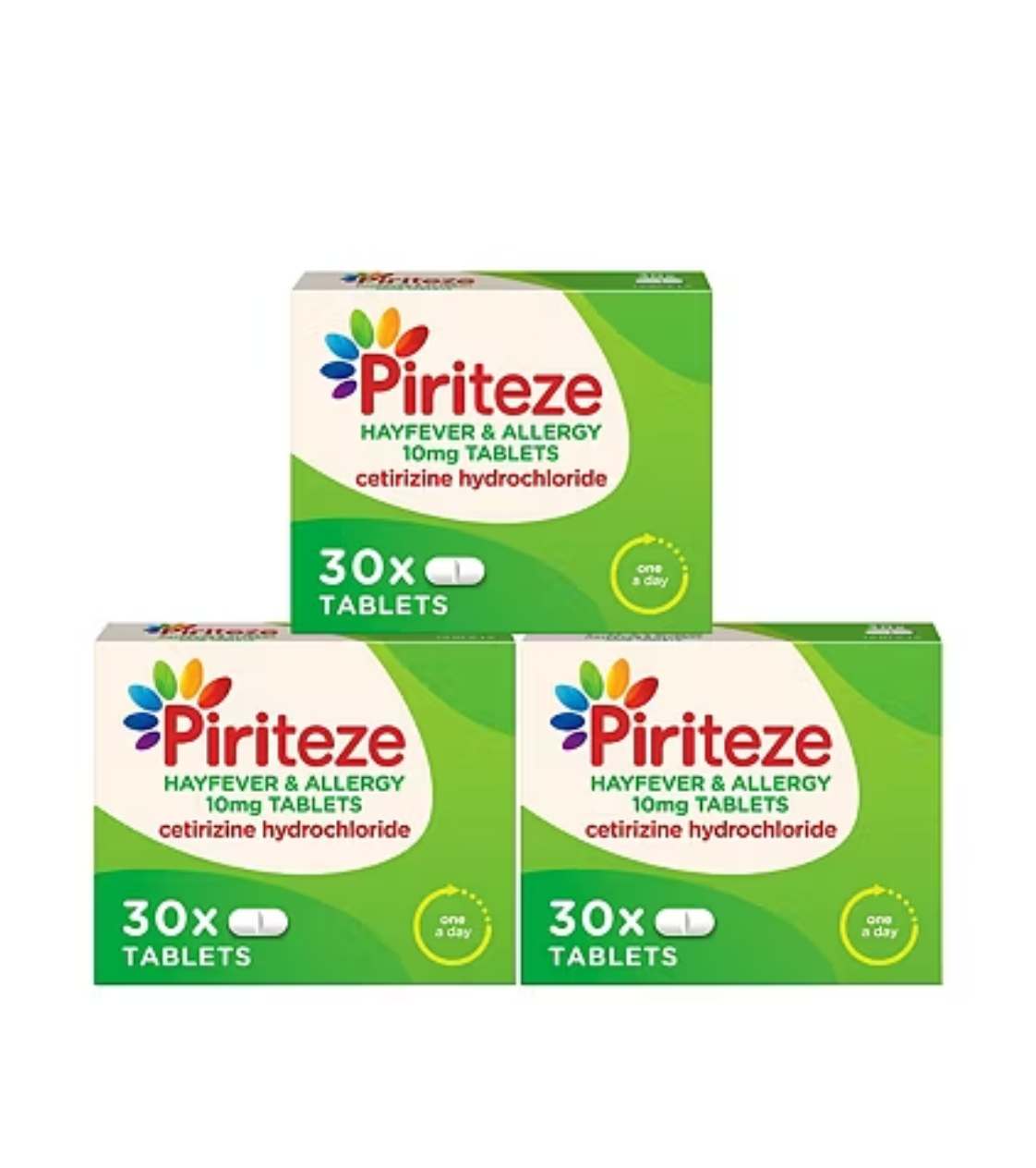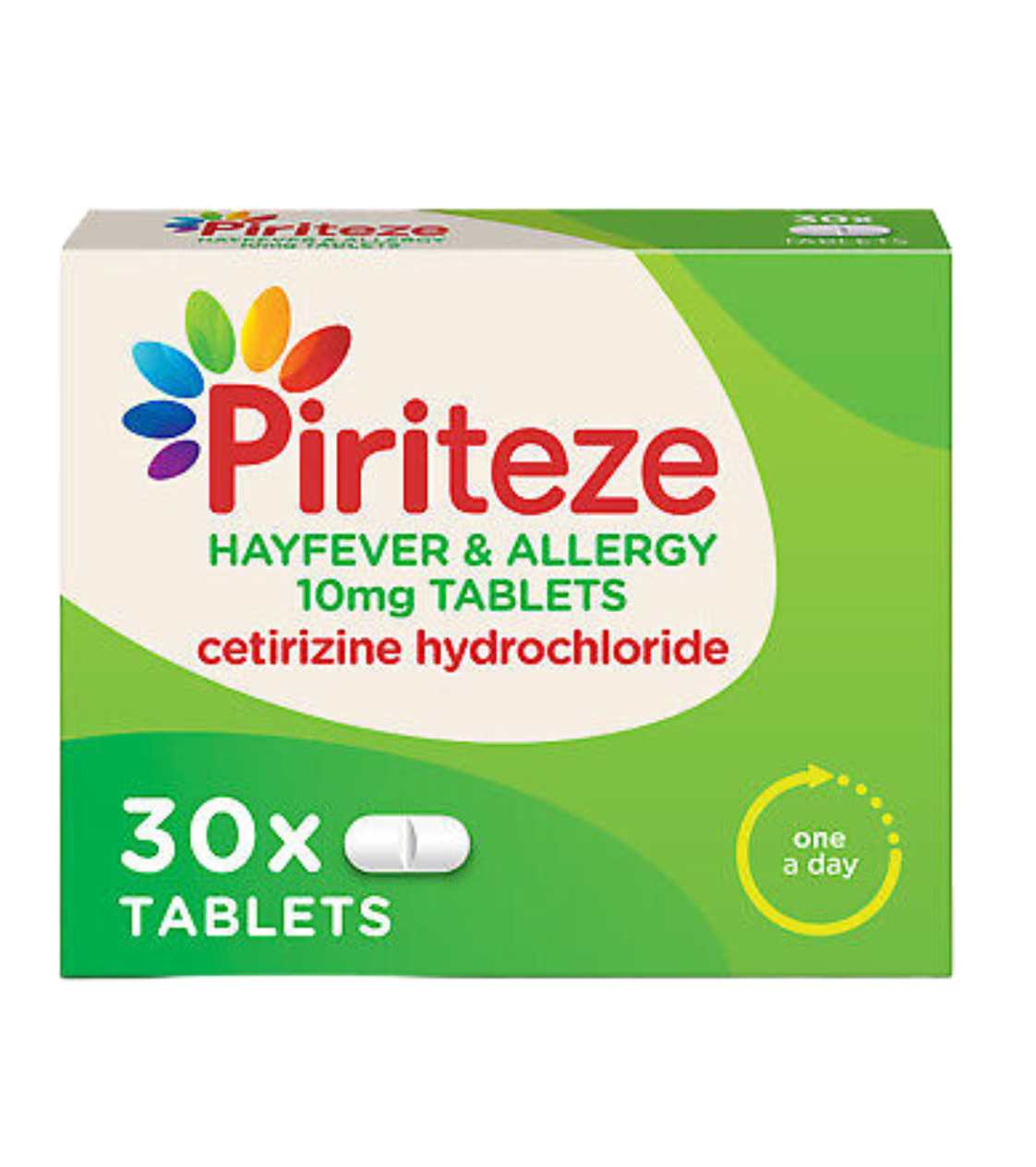Piriteze Allergy Tablets – Cetirizine Hydrochloride 10mg, Fast Allergy & Hayfever Relief – 30 Tablets