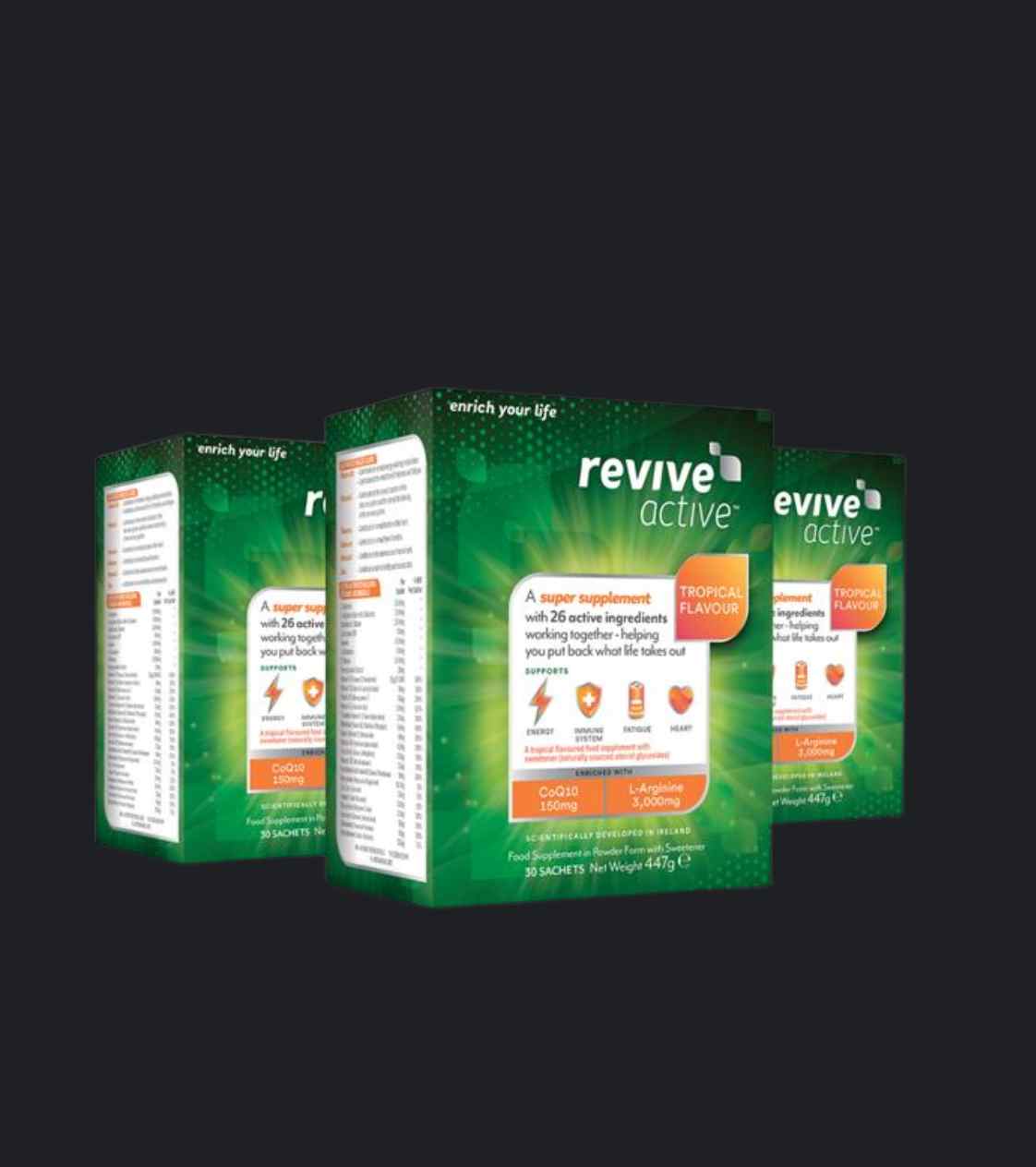 Formulated and scientifically developed in Ireland, Revive Active combines vitamins, minerals, amino acids, and antioxidants in an easily absorbable powder for maximum effectiveness. Simply mix one sachet with water daily for a revitalizing boost.