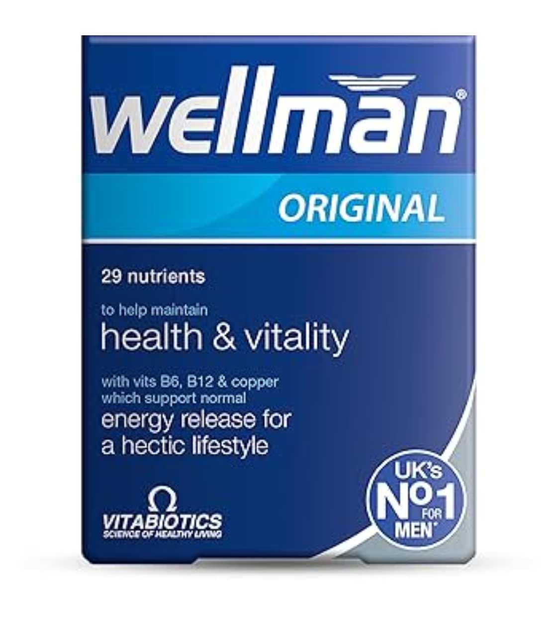 Wellman Original by Vitabiotics is the UK’s No.1 men’s supplement specially formulated to support men’s daily health, energy, and performance. Packed with over 20 essential micronutrients, it includes Co-Q10, L-Carnitine, Siberian Ginseng, vitamins, minerals, and amino acids to help maintain vitality and overall wellbeing. With vitamins B6 and B12, Wellman Original contributes to normal energy release and reduced tiredness, making it ideal for men with busy lifestyles. Suitable for men of all ages, it provides comprehensive support for immune health, reproductive health, and performance.